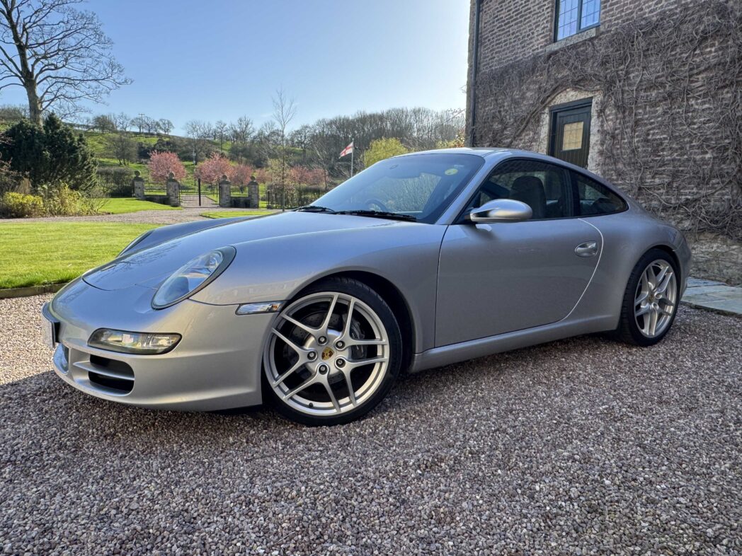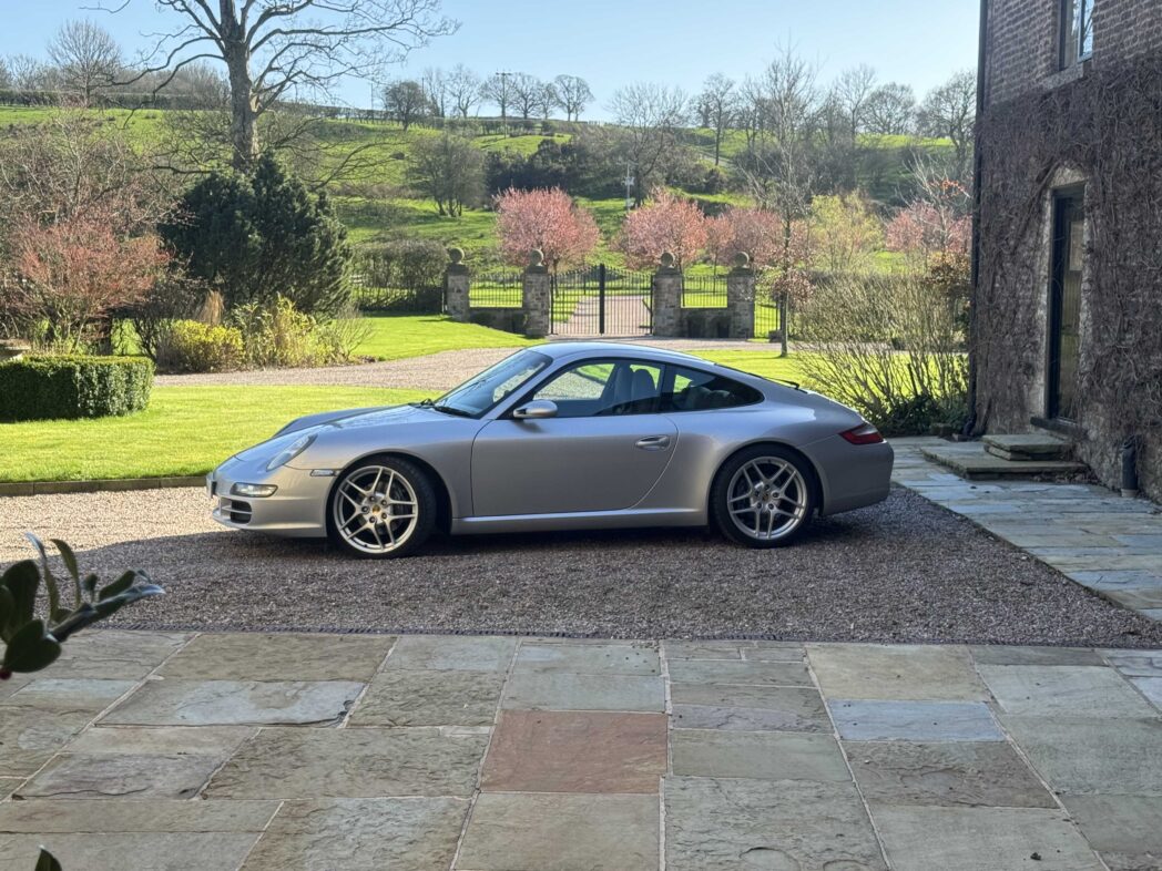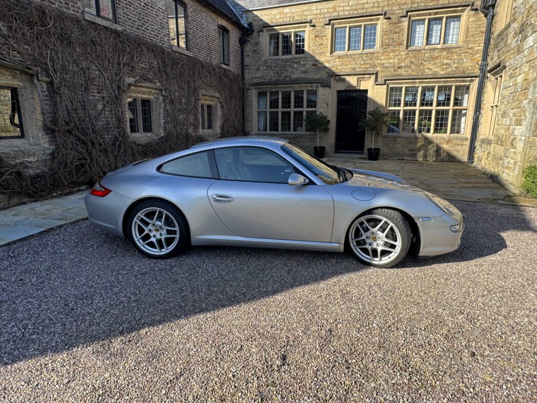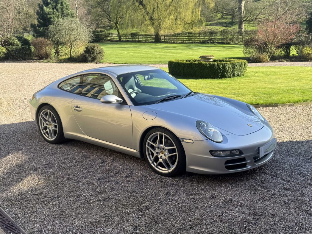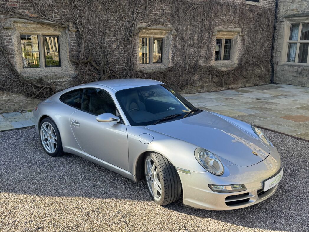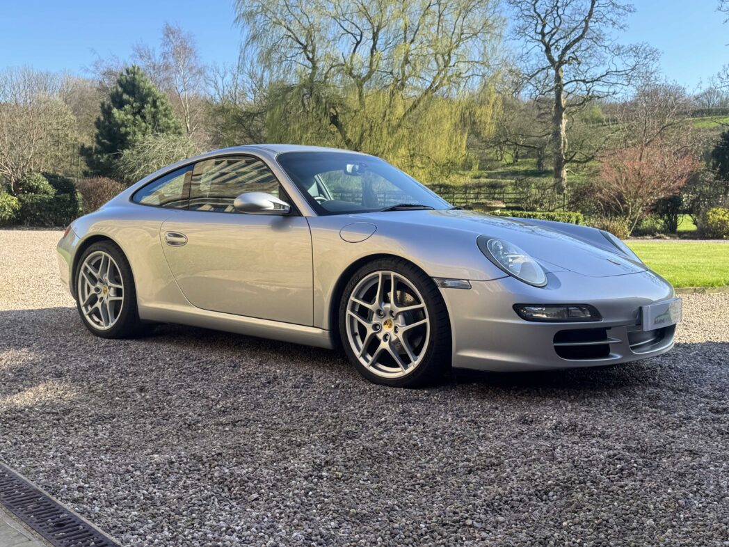 We are pleased to offer, on behalf of a customer, this lovely Porsche 911 997.1 C2 in Artic Silver with Sea Blue Leather Upholstery. A UK registered car, with only 4 owners and 91,000 miles. This is a UK registered car 11th May 2007. All matching engine, chassis and gearbox numbers. The paintwork is in lovely condition. The 19 inch Sports Design alloy wheels and all glass work is in excellent condition.