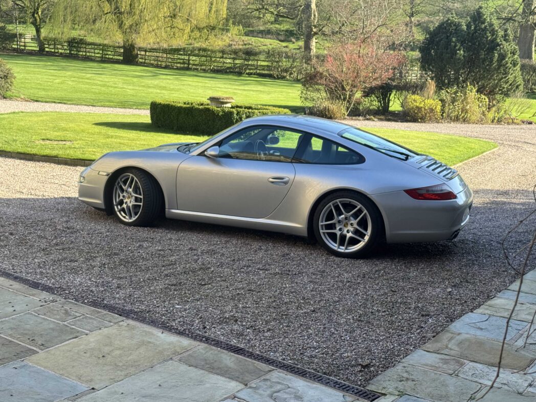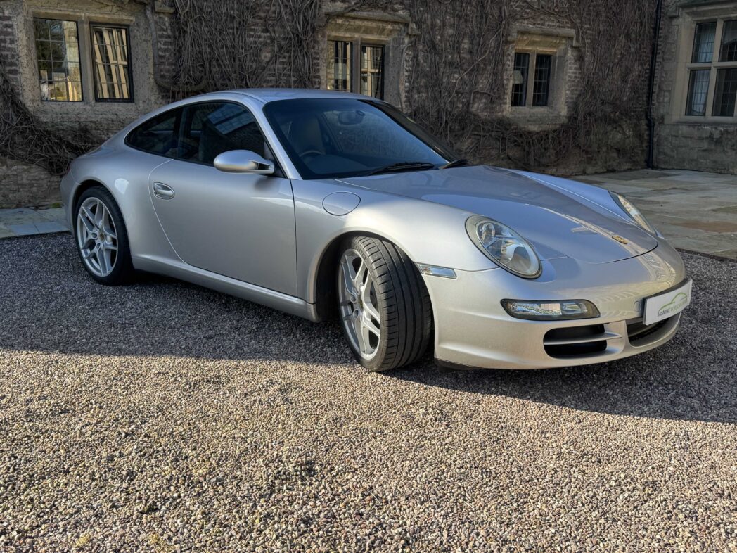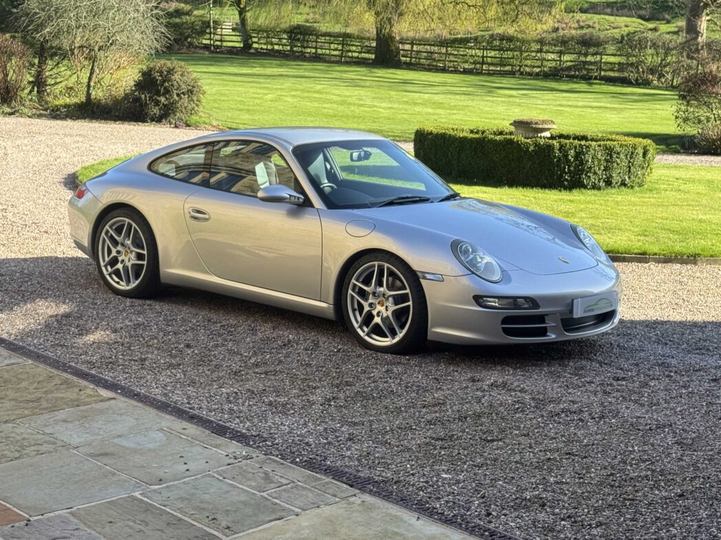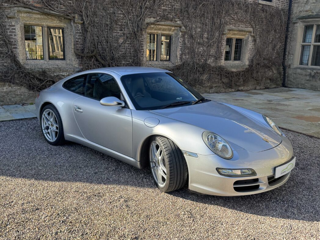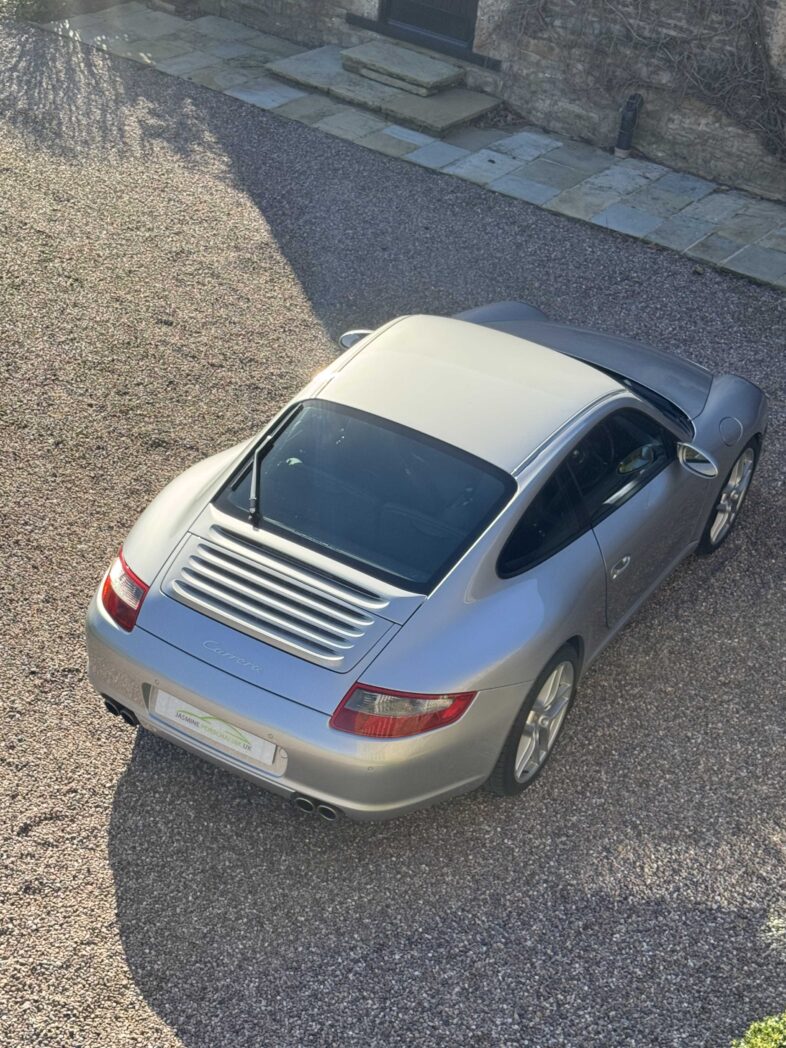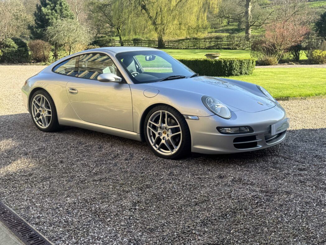 We are pleased to offer, on behalf of a customer, this lovely Porsche 911 997.1 C2 in Artic Silver with Sea Blue Leather Upholstery. A UK registered car, with only 4 owners and 91,000 miles. This is a UK registered car 11th May 2007. All matching engine, chassis and gearbox numbers. The paintwork is in lovely condition. The 19 inch Sports Design alloy wheels and all glass work is in excellent condition.