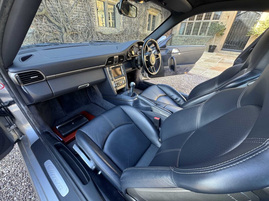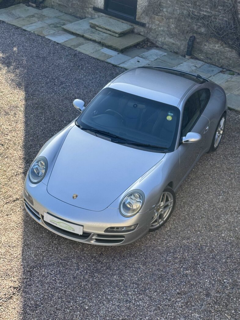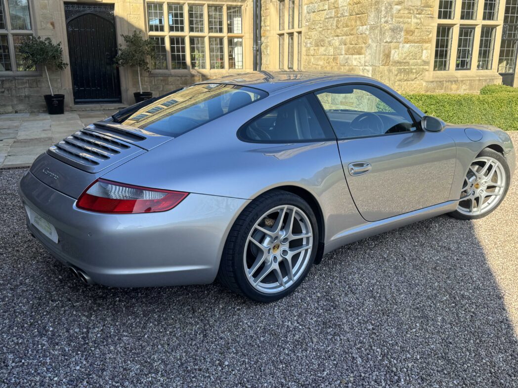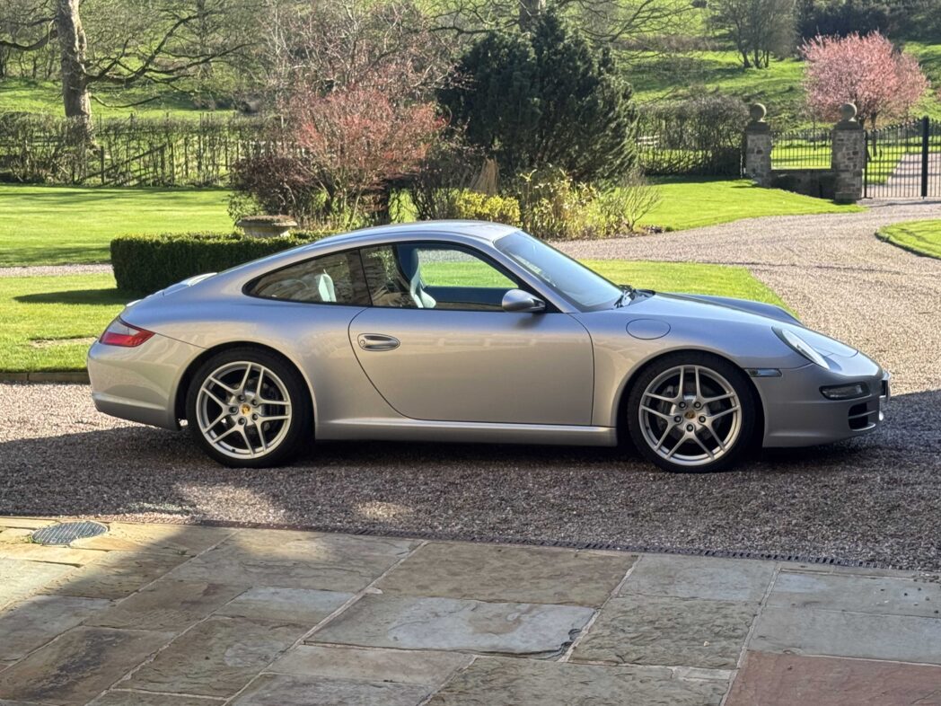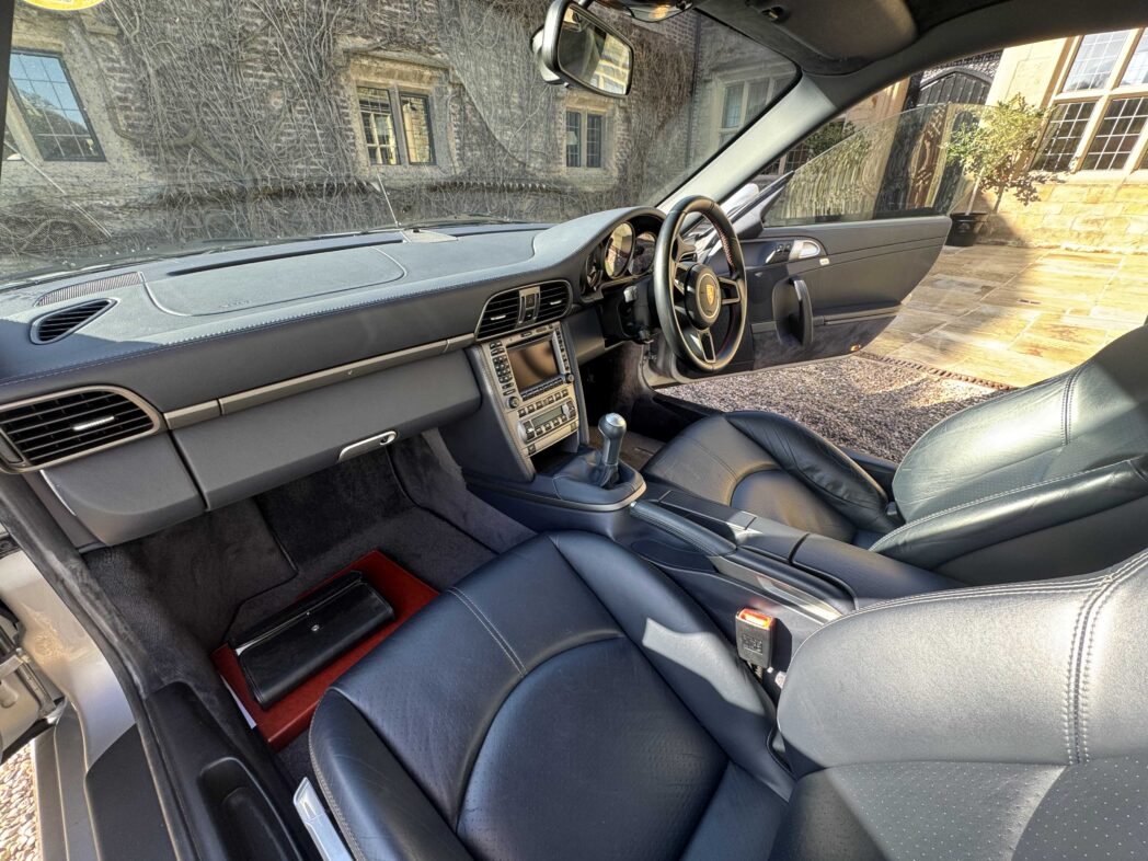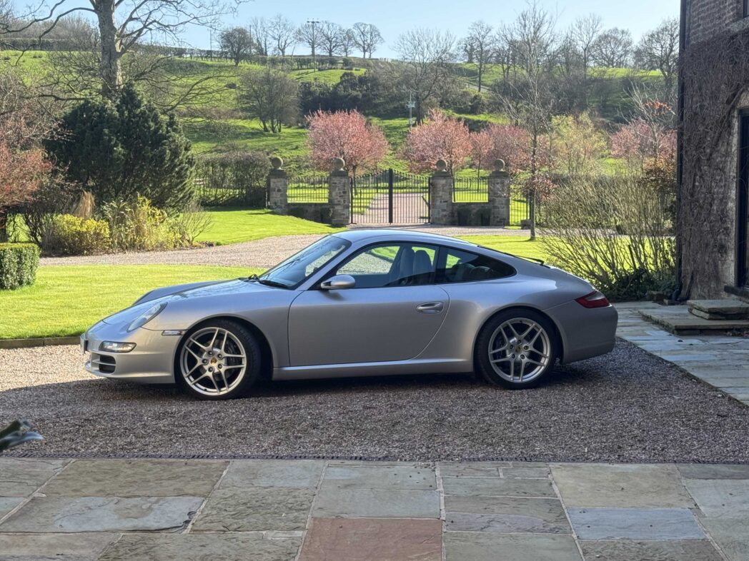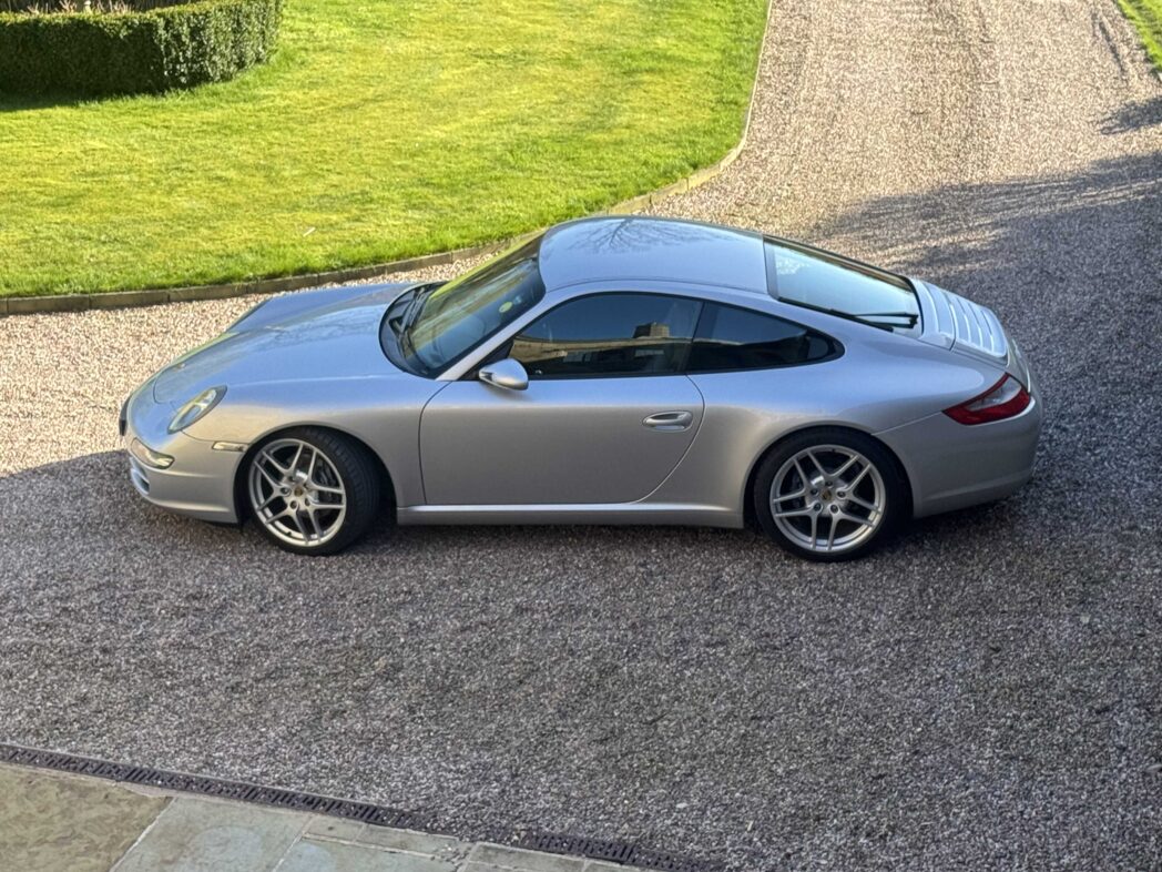 We are pleased to offer, on behalf of a customer, this lovely Porsche 911 997.1 C2 in Artic Silver with Sea Blue Leather Upholstery. A UK registered car, with only 4 owners and 91,000 miles. This is a UK registered car 11th May 2007. All matching engine, chassis and gearbox numbers. The paintwork is in lovely condition. The 19 inch Sports Design alloy wheels and all glass work is in excellent condition.
