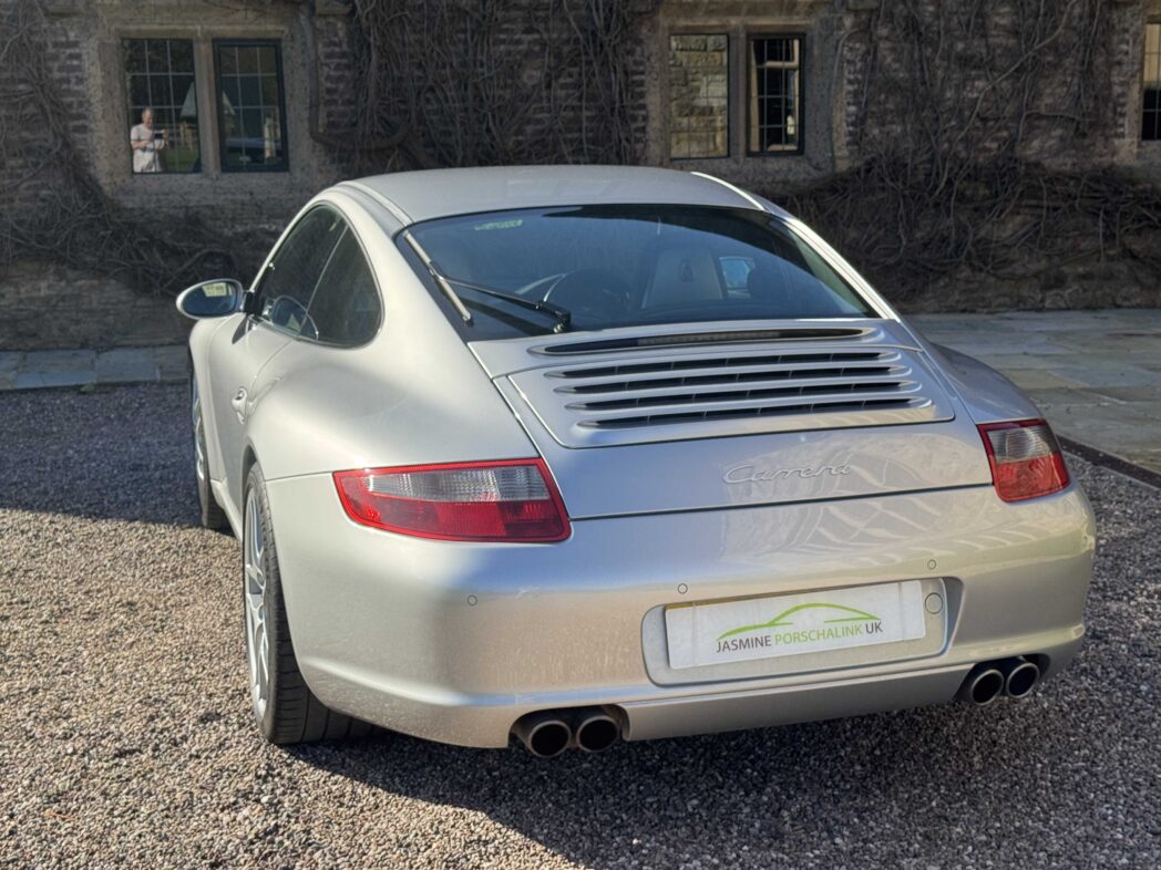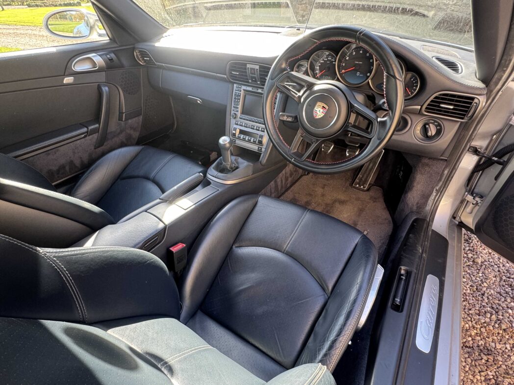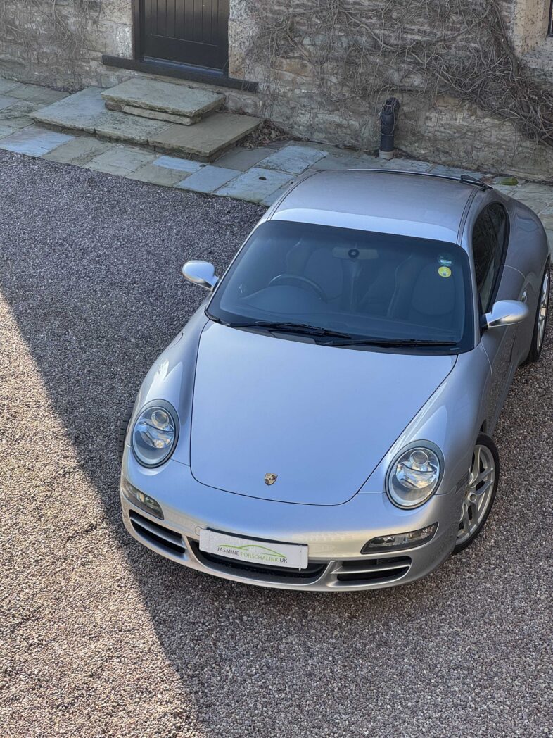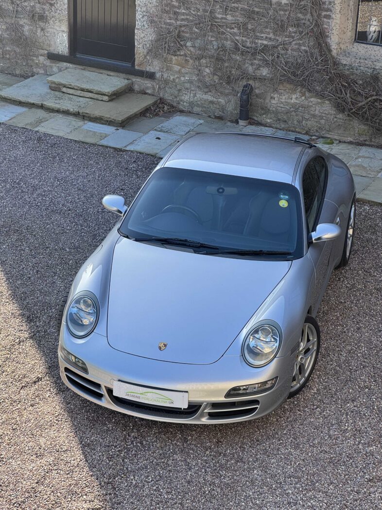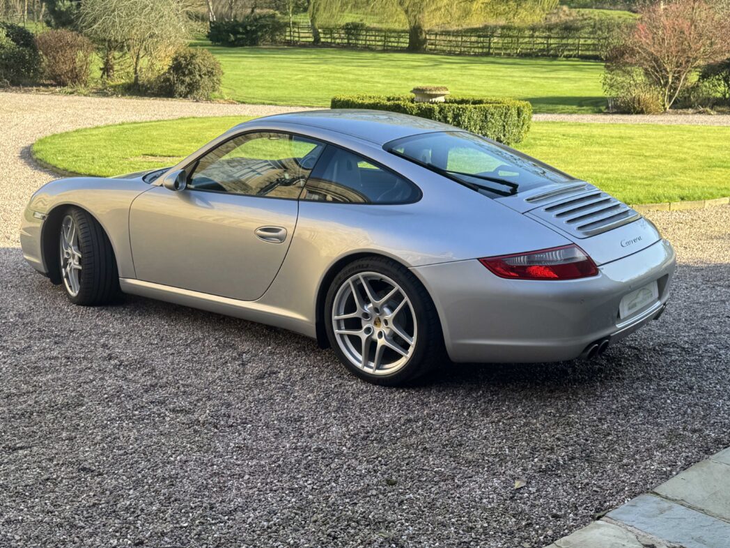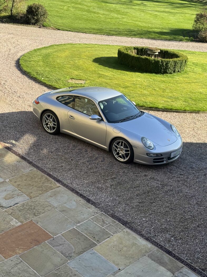 We are pleased to offer, on behalf of a customer, this lovely Porsche 911 997.1 C2 in Artic Silver with Sea Blue Leather Upholstery. A UK registered car, with only 4 owners and 91,000 miles. This is a UK registered car 11th May 2007. All matching engine, chassis and gearbox numbers. The paintwork is in lovely condition. The 19 inch Sports Design alloy wheels and all glass work is in excellent condition.